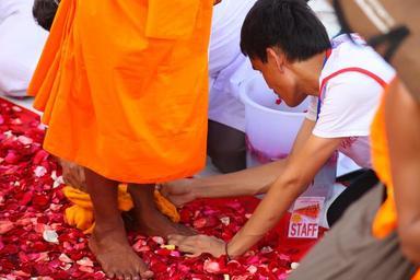 Keywords: buddhists monks walk tradition ceremony people thailand buddhism orange robes washing feet wat phra dhammakaya temple dhammakaya pagoda more than million budhas gold
