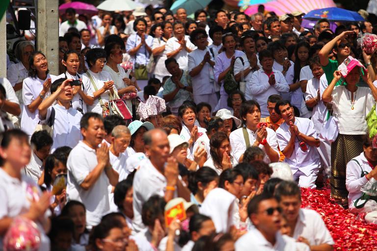 Keywords: buddhists praying people crowd thailand thai tradition ceremony asia