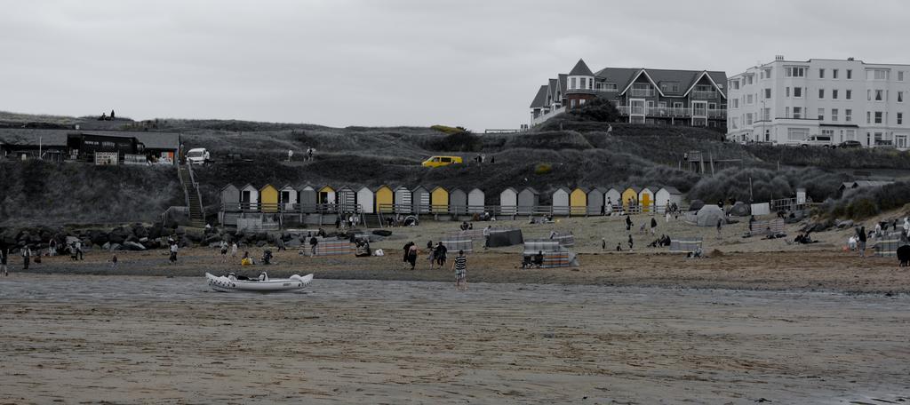 Keywords: bude beach cornwall selective colour coast sea holiday cornish bay england blue black and white coastline