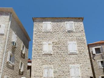 Keywords: budva montenegro old town balkan mediterranean adriatic sea home building shutter historically