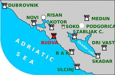 Keywords: Budva Old Town medieval fortress position.svg en Budva Old Town medieval fortress Position Own Bratislav 2009-10-18 Maps showing fortresses in the Middle Ages Montenegro SVG maps showing fortresses in the Middle Ages Montenegro in English