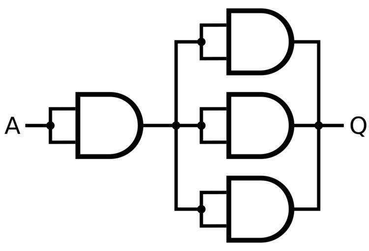 Keywords: Buffer (3x drive) from AND.svg Diagram showing a way of making a logical buffer from AND gates Own 2008-12-22 Inductiveload Own work all rights released Public domain Alternative logic gates