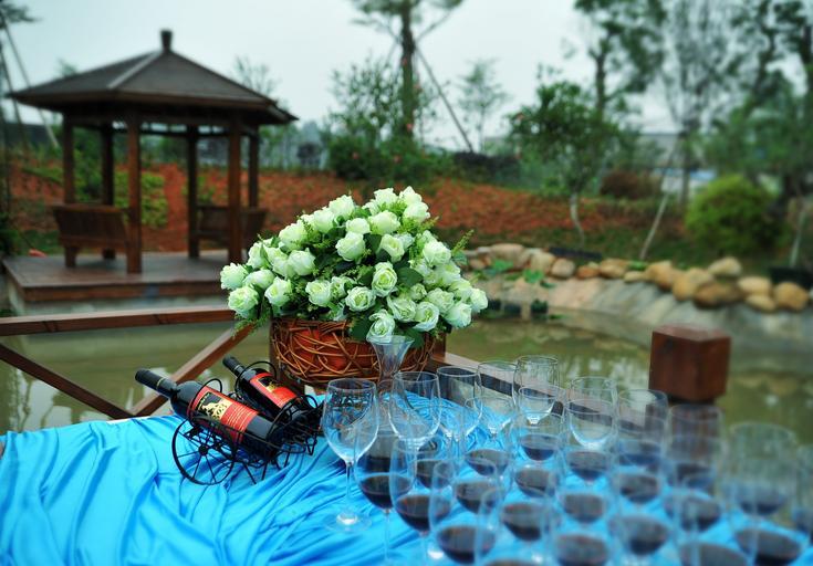 Keywords: buffet the scenery good wine glasses celebration picnic