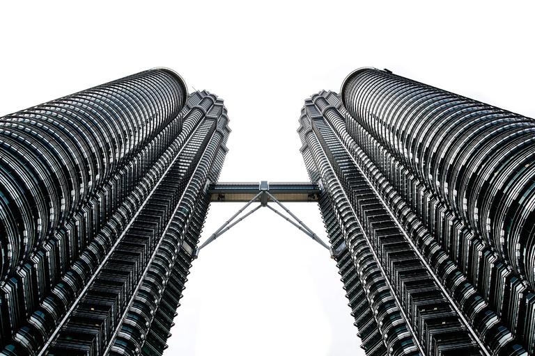 Keywords: building architecture modern contemporary petronas towers malaysia kuala lumpur skyscraper high tall tower facade uo construction design structure urban city exterior shape black and white