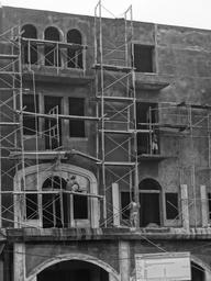 Keywords: building architecture scaffolding site building under construction construction site black and white worker