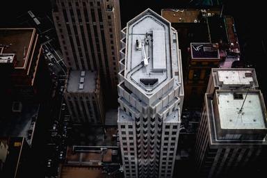 Keywords: building architecture skyscraper roof above high modern contemporary urban city downtown construction structure exterior perspective cityscape tower aerial view