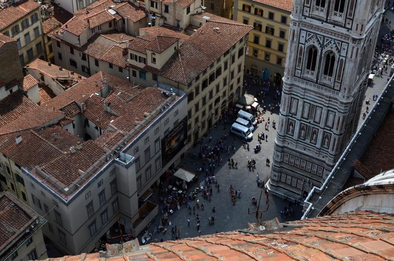 Keywords: building cathedral famous architecture italy tuscany florence church cupola dome view tower place people small houses above picturesque old town zrban historic basilica monument