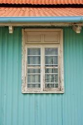 Keywords: building corrugated iron pastel-green window frame white