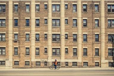 Keywords: building cyclist bicycle person windows urban architecture street riding biking apartment building city cycle