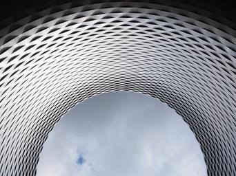 Keywords: building facade architecture hole basel opening places of interest event hall fair architectural landmark herzog de meuron steel mesh fair construction event location mch messe messe basel steel metal metal tapes