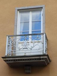 Keywords: building house balcony window city curtains wrought