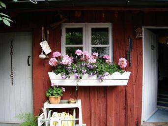 Keywords: building red summer the bloom box window flowers pink table white door