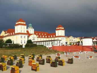 Keywords: building resort hotel architecture beach sky clouds nature outside chairs sand houses