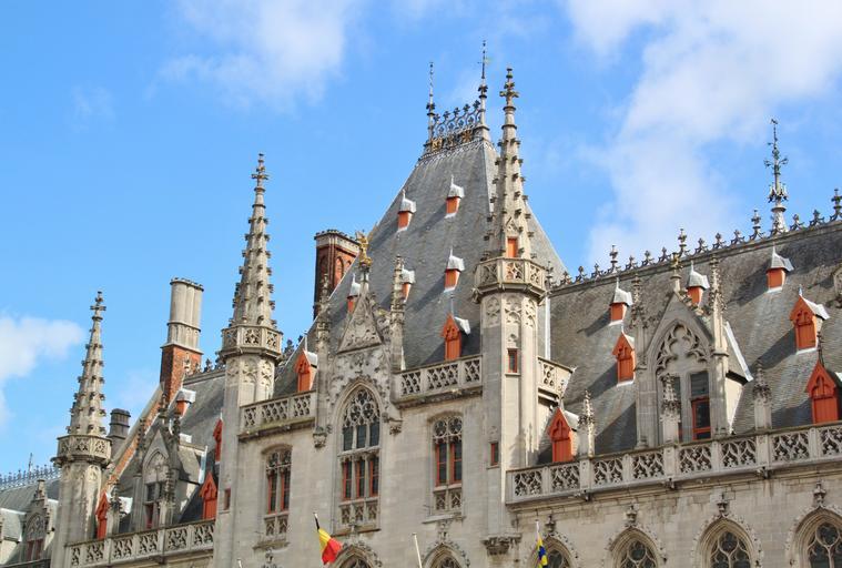Keywords: building roof window facade tile bruges old town belgium historically architecture world heritage city medieval city historic preservation construction art places of interest sky battlements towers