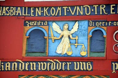 Keywords: building truss facade figurine font justice