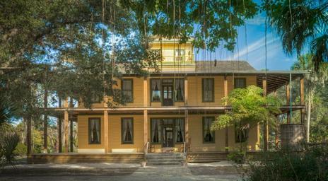 Keywords: building yellow landmark architecture colorful historical 1900's outdoor scenic old attraction sightseeing koreshan state park