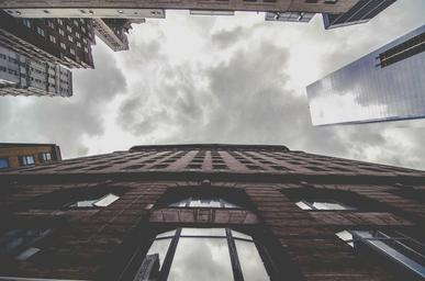 Keywords: buildings skyscrapers architecture upward looking up metropolis upward view upward angle exterior cityscape metropolitan heights urban high facade bricks city business office downtown office building exterior modern building