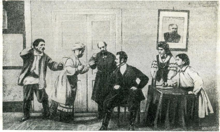 Keywords: Bujnicki3.jpg be-tarask Сцэна з спэктаклю «Па эвізіі» К апіўніцкага Тэата Ігната Буйніцкага яфёд У І Бела ускі тэат а ысы гісто ыі н 1959 С 95 author 1910 PD-old Ihnat Bujnicki Theatre of Belarus 1910 in theatre Marko Kropyvnytsky