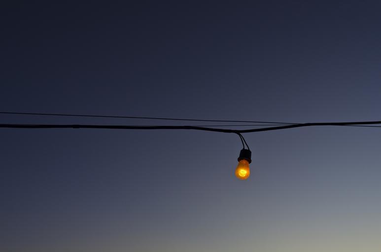 Keywords: bulb wire dusk sky gradient color contrast light power lamp electricity energy glowing illuminated line