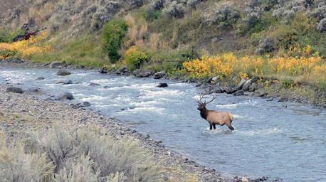 Keywords: bull elk river wildlife nature wilderness yellowstone national park landscape looking portrait wyoming water usa