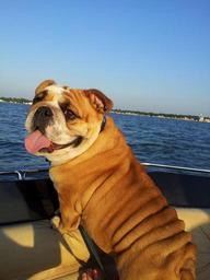 Keywords: bulldog boat fishing boat pet animal cute wrinkles crinkles