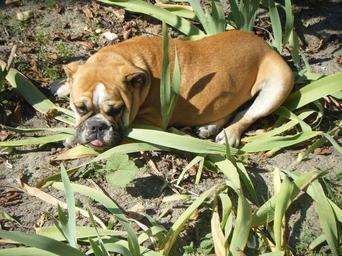 Keywords: bulldog dog english bulldog pet animal domestic mammal young adorable outdoors fur puppy canine