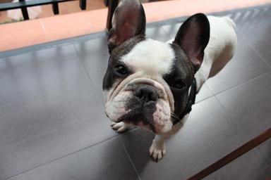 Keywords: bulldog dog pet foreground funny black and white