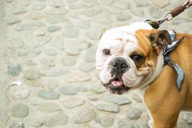 Keywords: bulldog dog pet happy puppy