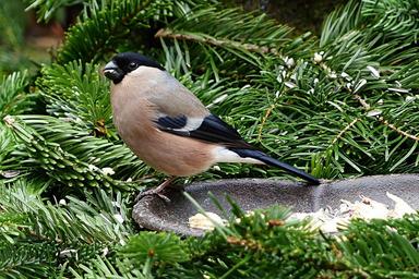 Keywords: bullfinch bird animal female pyrrhula winter foraging garden