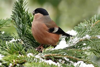 Keywords: bullfinch bird female animal pyrrhula foraging winter garden