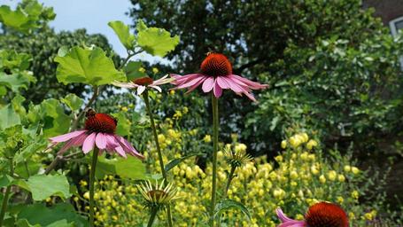Keywords: bumble bees flowers insect summer flower bumblebee echinacea sun hat
