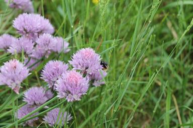 Keywords: bumblebee flower chives onion plant nature summer insect bloom