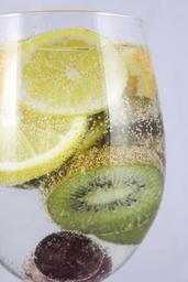 Keywords: bunch of grapes kiwi fruit lemon grapes sparkling water tropical fruit a glass of vitamins a healthy diet nutrition health
