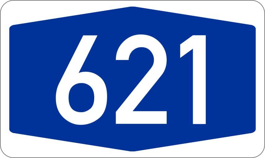 | Keywords: Bundesautobahn 621 number.svg Bundesdeutsche Autobahnnummer Automatisch erzeugt durch 3247 Anmerkung Diese Autobahn existiert nicht war oder ist jedoch geplant Dieses Bild wurde für die Nutzung in Artikeln über die Planung erstellt German Autobahn number signet Created automatically by 3247 Note This road does not currently exist but is or was planned The number sign is supposed to be used in articles about the planned road Bundesautobahn numbers 621 | ||||