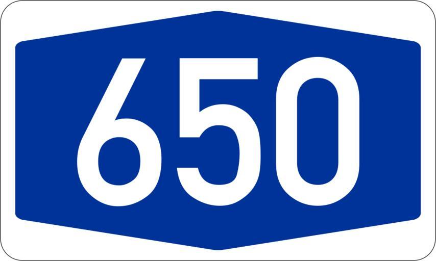 Keywords: Bundesautobahn 650 number.svg Bundesdeutsche Autobahnnummer Automatisch erzeugt durch 3247 German Autobahn number signet Created automatically by 3247 Bundesautobahn numbers 650 Bundesautobahn 650