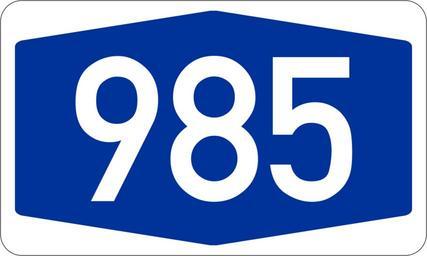 | Keywords: Bundesautobahn 985 number.svg Bundesdeutsche Autobahnnummer Automatisch erzeugt durch 3247 Anmerkung Diese Autobahn existiert nicht war oder ist jedoch geplant Dieses Bild wurde für die Nutzung in Artikeln über die Planung erstellt German Autobahn number signet Created automatically by 3247 Note This road does not currently exist but is or was planned The number sign is supposed to be used in articles about the planned road Bundesautobahn numbers 985 985 number | ||||