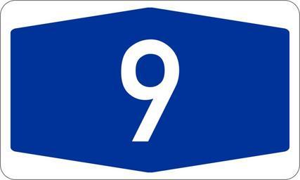 Keywords: Bundesautobahn 9 number.svg Bundesdeutsche Autobahnnummer Automatisch erzeugt durch 3247 German Autobahn number signet Created automatically by 3247 Bundesautobahn numbers 009 Bundesautobahn 9 9 number Bundesautobahn