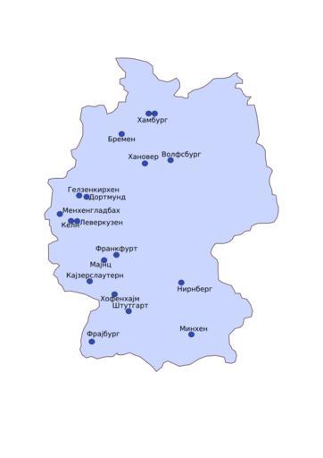 Keywords: BundesligaGeoTimoviPrvaLiga2010-2011.svg sr Тимови п ве Бундеслиге у фудбалу 2010/11 own Kaster Locator maps of sport leagues of Germany