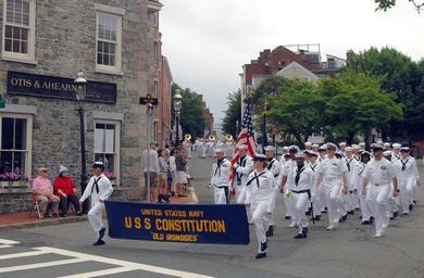 | Keywords: Bunker Hill Day Parade DVIDS180933.jpg en Sailors from USS Constitution march through the streets of Charlestown followed by Navy Band Northeast during the Bunker Hill Day parade The Battle of Bunker Hill fought June 17 1775 was one of the first major engagements of the Revolutionary War Colonial forces inflicted 1 054 casualties on the British the highest suffered by the British in any single encounter during the entire war The Colonial forces suffered 450 casualties most suffered during an orderly retreat to fortified positions in nearby Cambridge 2009-06-14 Petty Officer 1st Class Mark O'Donald https //www dvidshub net/image/180933 090614-N-+++++-138 2009-06-19 04 44 CHARLESTOWN US PD-USGov-Military-Navy USS Constitution ship 1797 Images from DoD uploaded by Fæ |