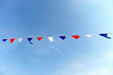Keywords: bunting blue sky sunshine seaside colours red white navy decoration flags