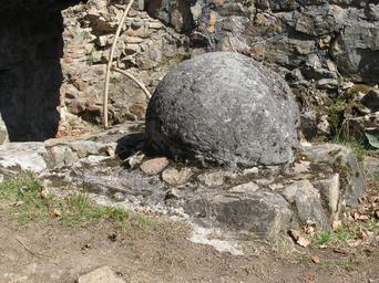 | Keywords: Burg Tannenberg Blidenstein.JPG en Tannenberg Castle near Jugenheim Odenwald mountains Hesse Germany Stone ball which was thrown into the castle with a trebuchet during the siege of 1399 It has a diameter of 60 cm and a weight of approximately 280 kg It is definitely not a gun ball of the great gun of Frankfurt which was used during this siege This famous gun fired stone balls with a diameter of only 50 cm and a weight of approximately 170 kg own Anaconda74 2012-03-25 Trebuchets Ammunition Siege artillery Burg Tannenberg Jugenheim 14th-century sieges Stone spheres Cc-zero |