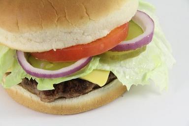 Keywords: burger hamburger fast food cheeseburger sandwich beef lunch american restaurant unhealthy junk food lettuce cheese tomato bun grilled