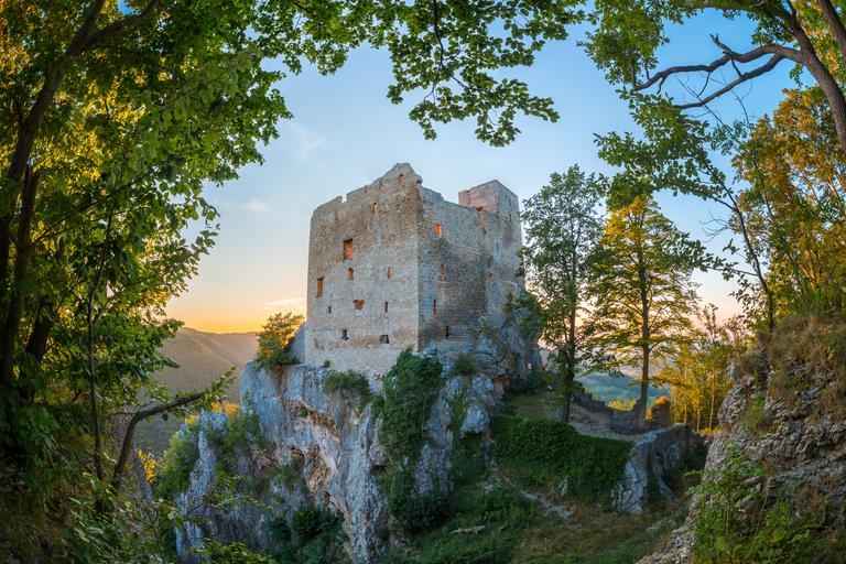 Keywords: burgruine castle ruin substantiate masonry sunset light window rock stone building summer facade