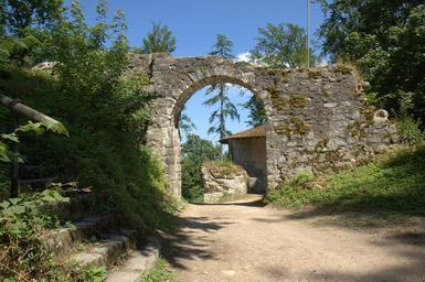Keywords: Burgruine Schwarzenburg05.JPG de Blick von der Burg auf das innere Tor der Vorburg own Sven-121 2010-07-19 Burgruine Schwarzenburg