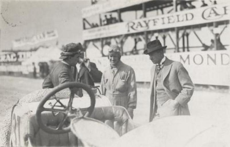 | Keywords: Burman & Bragg - 1912 American Grand Prize Milwaukee.jpg Bob Burman left leans on a 31 Benz race car Caleb Bragg winner of the 1912 American Grand Prize on a road course in en Wauwatosa Wisconsin faces camera The other two men are unidentified An observation area for viewing the racing is in the background http //www wisconsinhistory org/whi/fullRecord asp id 55651 Wisconsin Historical Society 1912-10-5 Robert J Taylor PD-old-80 1912 American Grand Prize Black and white photographs of automobile racing in 1912 Bob Burman Benz racing cars Caleb Bragg |