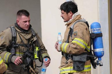| Keywords: Burn to learn 120315-N-ME895-001.jpg en U S Army Spc Christopher Minix from the 683rd Engineering Detachment Firefighting HQ gives feedback to an Afghan Air Force firefighter after a firefighting training mission which showcased recently certified AAF firefighters putting out live fires as well as rescuing and aiding training dummies 2012-03-15 Chief Petty Officer Jason Carter https //www dvidshub net/image/542927 120315-N-ME895-001 2012-03-15 22 56 KANDAHAR AIRFIELD AF PD-USGov-Military-Navy Kandahar International Airport Firefighting training Images from DoD uploaded by Fæ |