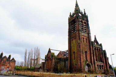 Keywords: Burnt out church2.jpg en Burnt out church near Dundyvan Rd Coatbridge Own Jayhoolihan Dundyvan Church