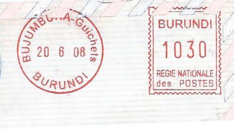 Keywords: Burundi stamp type 5.jpg en Meter stamp catalog image Burundi type 5 Marc Perrin Richard Stambaugh 2013-09-04 Meter stamps of Burundi