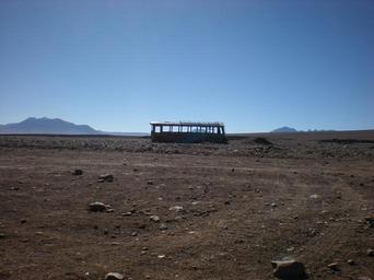 Keywords: bus destroyed atacama travel landscape trip south america clouds blue sky sky traveling leisure vacation dry desert bolivia desolate
