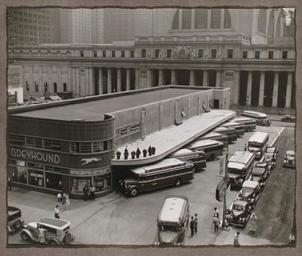 Keywords: bus station retro fifties art collage buses transportation urban city street transport travel public road passenger bus stop terminal transit tourism parking banner sign vehicle